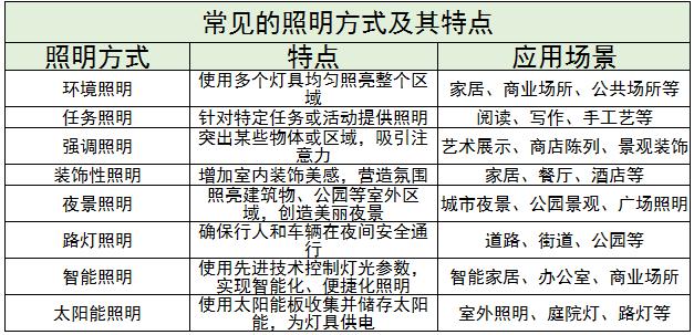 常见的照明方式及其特点