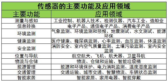 传感器的主要功能包括测量与感知、信息转换、环境监测、健康监测、安全监测、位置与导航、物流与仓储、能源管理、交通管理以及智能家居等。应用领域则涵盖了工业控制、电子产品、航空航天、医疗健康、环保、物流、智能家居等多个领域。这些传感器在这些领域中发挥着至关重要的作用,帮助我们更好地了解和控制周围环境,提高生产效率,改善生活质量,并促进可持续发展。