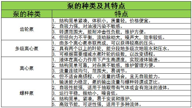 泵的种类及其特点