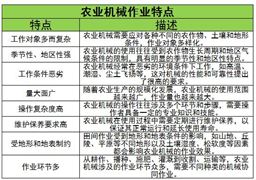 农业机械作业特点这个表格总结了农业机械的主要作业特点,这些特点使得农业机械的设计、制造、使用和维护都具有一定的...