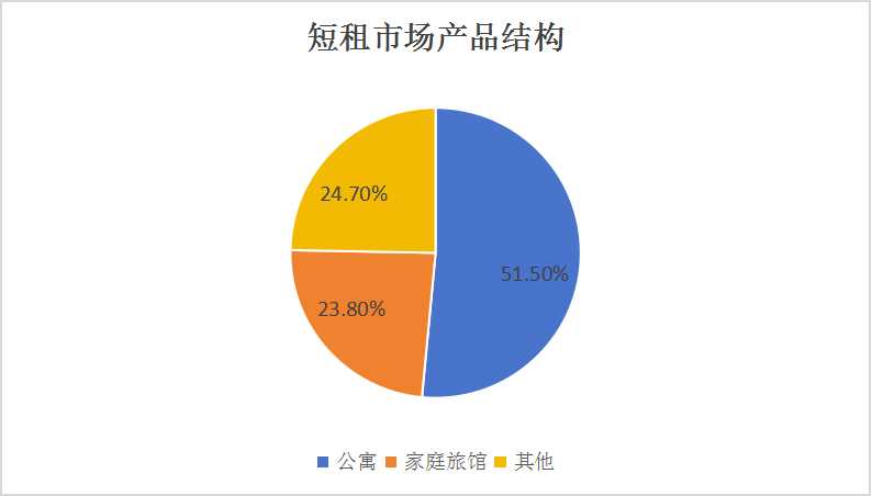 目前,国内短租仍以公寓需求为主,占整个短租市场产品结构的51.5%,家庭旅馆其次,占比为23.8%。