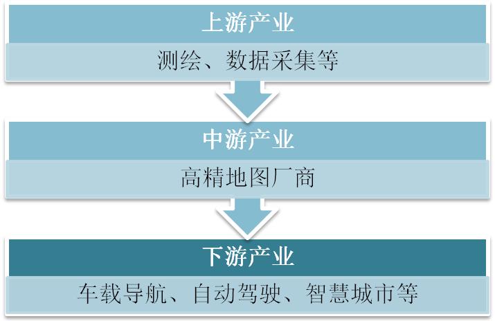 高精度地图的产业链可以被划分为:上游测绘、数据采集等;中游为高精地图厂商;下游应用领域主要为车载导航、自动驾驶、智慧城市等。