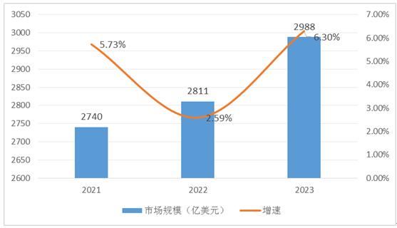 图表:2021-2023年全球地面设备业发展规模(亿美元)