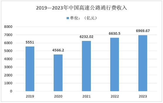 随着我国经济社会的快速发展和高速公路规模总量不断增长,公众对高速公路出行的品质要求日益提高,2023年我国高速公路通行费收入约6969.67亿元。