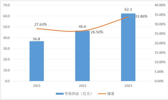 漏泄电缆之前一直被外国品牌所把持,如安德鲁、安弗施为代表。自2007年开始越来越多的国内企业进入漏泄电缆市场,竞争压力逐渐增大,其中不少品牌在市场中脱颖而出,中天科技、汉胜、享鑫都是国内第一竞争梯队。2021年市场供给规模约为36.8亿元,至2023年增长至62.3亿元左右。