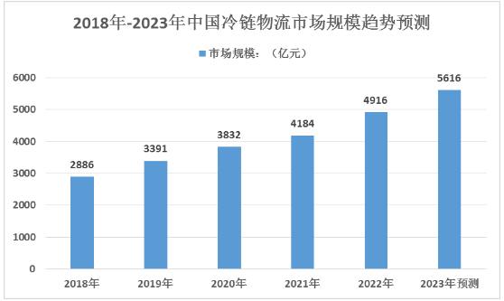 近年来,随着国家骨干冷链物流基地、产地销地冷链设施建设稳步推进,冷链装备水平显著提升,我国冷链物流市场规模快速增长,从2018年2886亿元增长到2022年的4916亿元,年均复合增长率达14.24%。据中国物流与采购联合会最新统计数据显示,2023年1-5月,我国冷链物流市场规模达2395亿元,同比增长3.6%。