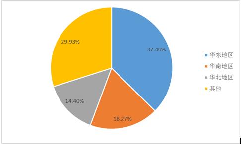 从区域分布情况来看,华东地区是物业管理企业供给数量最多、最为集中的地区,占比超过1/3;其次为华南地区和华北地区,市场份额分别达到18.27%和14.40%。