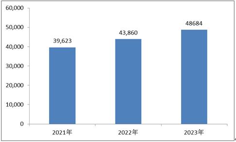 2021年,中国数字文化产业营业收入为39623亿元;2022年,中国数字文化产业营业收入为43860亿元。2023年我国数字文化产业营业收入约为48684亿元。