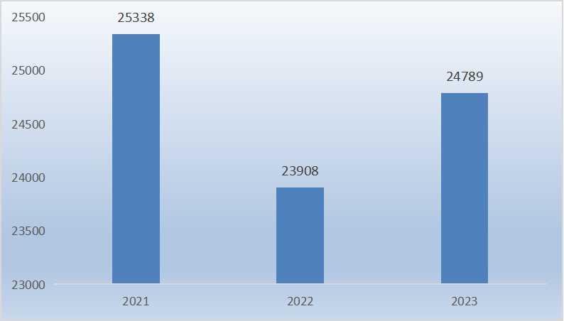 图表:2021-2023年国内14岁及以下人口规模(单位:万人)