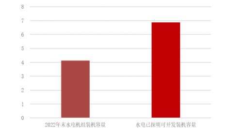 图表:2022 年末水电机组装机容量与水电已探明可开发装机容量(亿千瓦)
