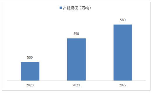 图表:2020-2022年中国酱腌菜行业总体产能规模