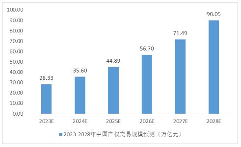 图表:2023-2028年中国产权交易行业交易规模预测