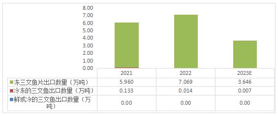 图表:2021-2023年中国三文鱼出口数量情况