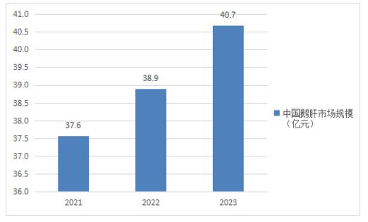 图表:2021-2023年中国鹅肝行业市场规模(单位:亿元)