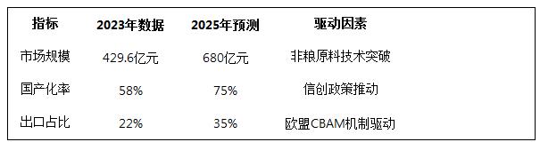 2023年中国生物基材料市场规模达429.6亿元(中研普华《2025-2030年中国生物基材料市场投资策略及前景预测研究报告》),五年增长3.4倍。核心驱动力: