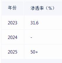 表2:中国电动汽车市场渗透率及预测(2023-2025年)