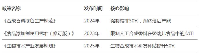 环保政策:2024年《合成香料绿色生产规范》要求企业减排30%,倒逼落后产能退出,行业集中度CR5提升至35%。