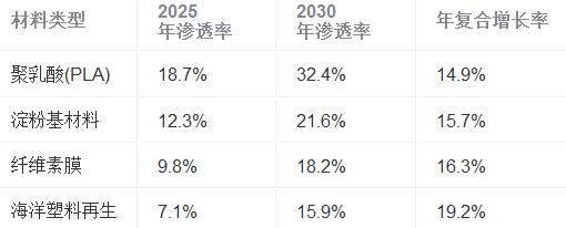 表2 2025-2030年生物基材料在化妆品包装应用预测