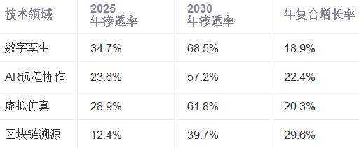 表2 2025-2030年工业元宇宙关键技术渗透率预测