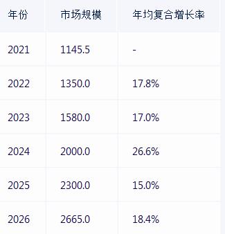 表1:2021-2026年中国物流仓库行业市场规模及预测(单位:亿元)