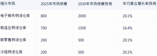 表2:2025-2030年中国物流仓库行业细分市场规模预测(单位:亿元)