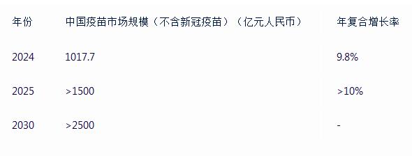 据中研普华《2025-2030年中国疫苗行业供需预测及投资潜力研究咨询报告》显示,2024年中国疫苗市场规模(不含新冠疫苗)已达到约1017.7亿元人民币,年复合增长率达9.8%。预计到2025年,这一数字将突破1500亿元人民币,年均增长率保持在10%以上。而到2030年,中国疫苗市场规模有望突破2500亿元人民币,成为全球疫苗市场的重要增长极。