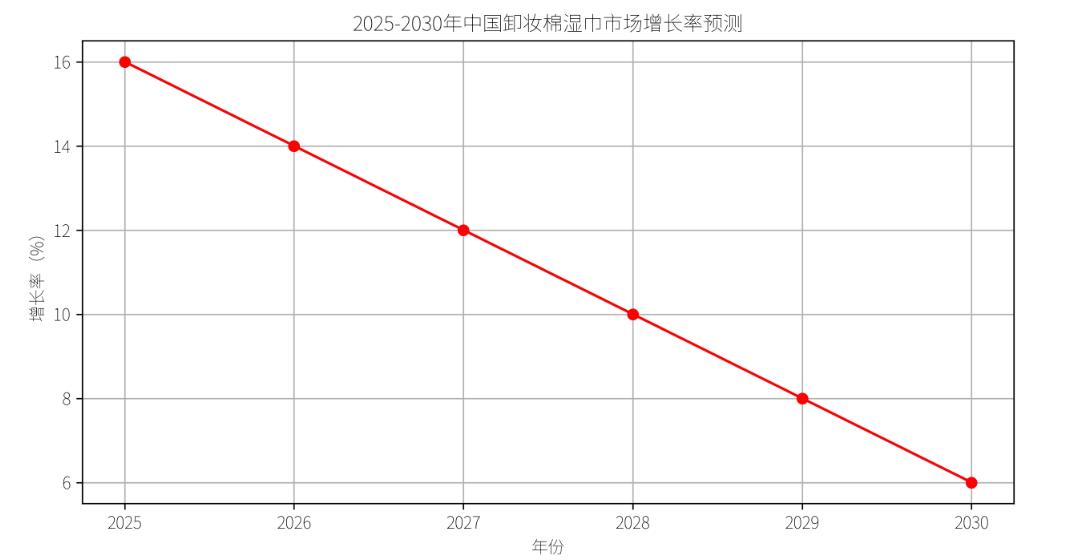 表2:2025-2030年中国卸妆棉湿巾市场增长率预测