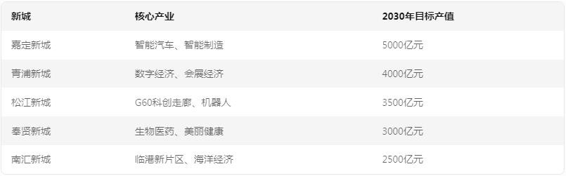 根据上海市发改委最新规划,五大新城将形成特色产业集群: