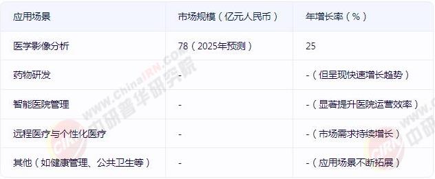图表1:中国人工智能医疗主要应用场景及市场规模
