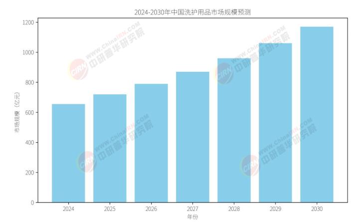 (注:图表中的数据为示例数据,实际数据可能有所不同。图表展示了中国洗护用品市场规模从2024年至2030年的预测趋势,有助于读者更直观地了解市场未来的发展趋势。)
