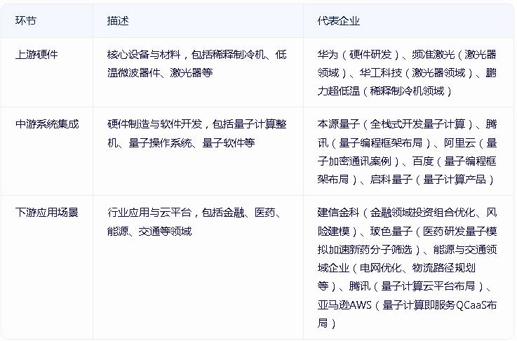 中游:整机制造、软件算法开发(如量子机器学习框架),技术壁垒最高。