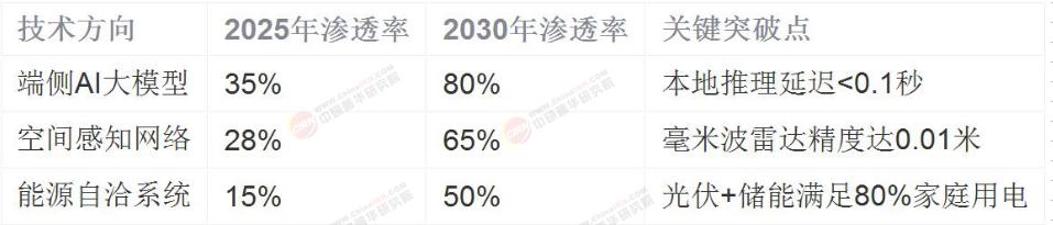 (表1)2025-2030年智能家居关键技术渗透率预测