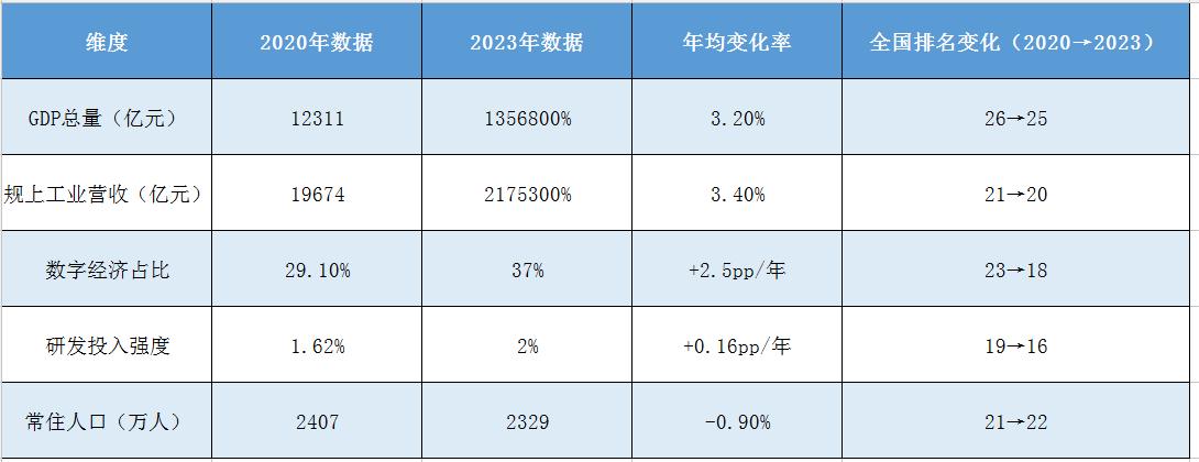 1.1 产业经济“三升一降”新格局(核心数据表)