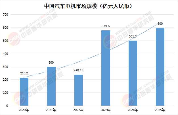 数据透视:中国汽车驱动电机市场规模增长至2024年501.7亿元,年均复合增长率达45%。2025年预计突破600亿元,其中永磁同步电机占比超96%。