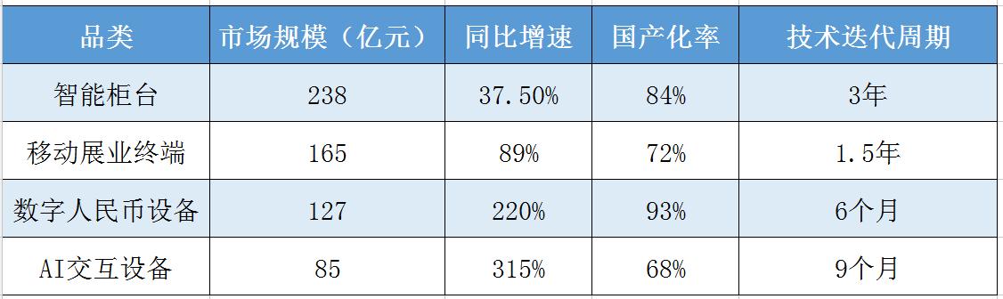 表1:2023年中国智慧银行终端设备核心品类数据对比