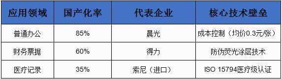 外资垄断:日本王子(高端票据纸全球市占率65%)、美国施乐(无碳复写纸专利壁垒)