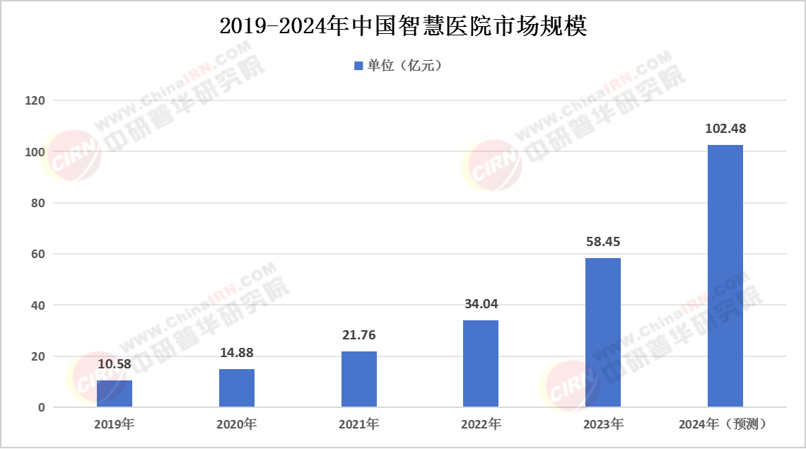 报告预测,2024年中国智慧医院市场规模将增至102.48亿元。这一预测基于当前市场规模的增长趋势、技术创新的速度以及市场需求的持续扩大。未来几年,随着智慧医院建设的深入推进和技术的不断迭代升级,市场规模有望继续保持快速增长。