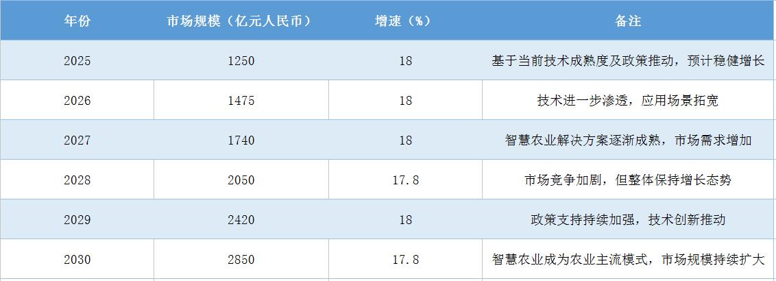 六、一张表格看未来:中国AI+智慧农业市场规模预测
