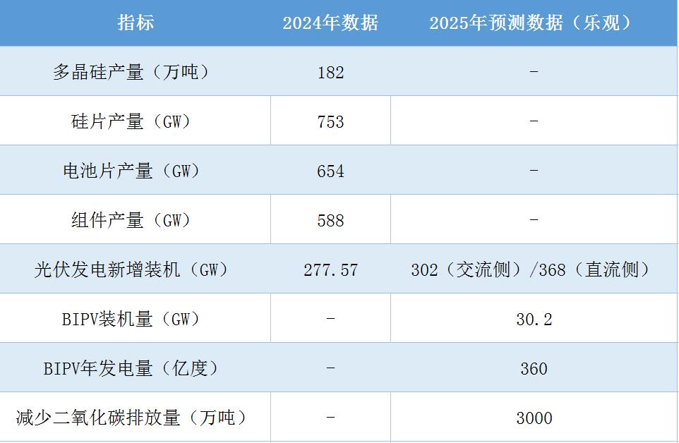 通过这张表格,我们可以清晰地看到中国光伏行业在2024年取得的显著成绩以及2025年的乐观预测数据。特别是BIPV市场的快速发展和巨大潜力,为我们展示了光伏+农业/建筑一体化领域的广阔前景。让我们共同期待中国光伏能源市场的美好未来!
