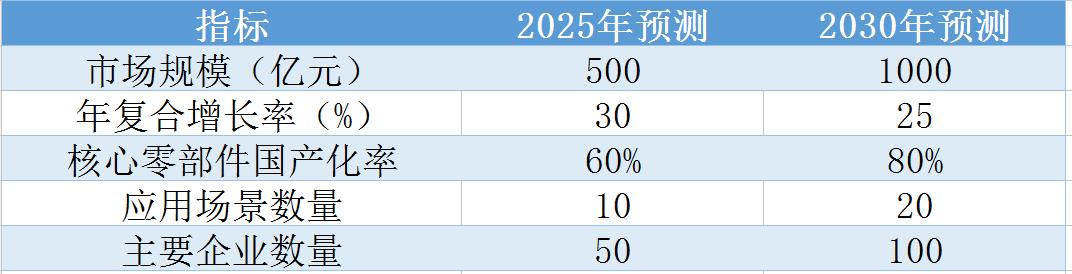 表1:2025-2030年中国人形机器人市场关键指标预测