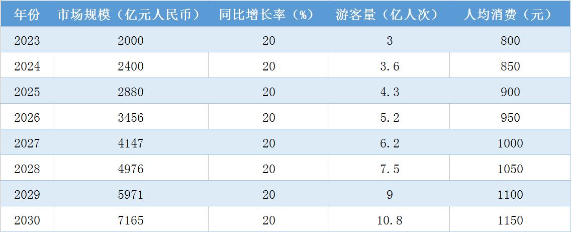(注:以上数据为预测值,实际市场规模、游客量和人均消费可能因多种因素而有所波动。)