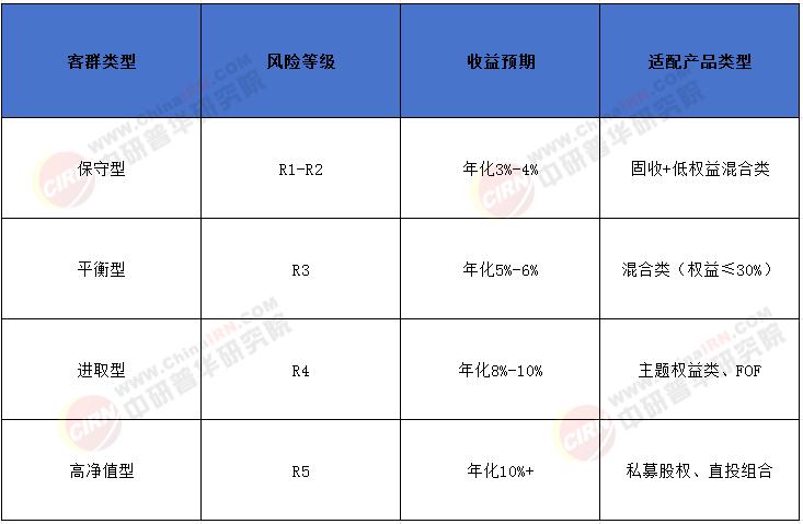 客群类型风险等级收益预期适配产品类型