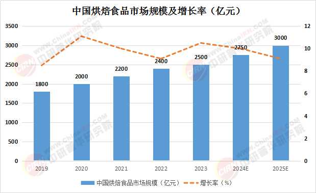 近年来,烘焙食品行业市场规模持续扩大。数据显示,2023年中国烘焙食品市场规模已达到约2500亿元人民币,预计未来几年将保持年均10%以上的增长率,到2025年市场规模有望突破3000亿元。这一增长趋势主要得益于消费者对烘焙食品的需求不断增加,以及行业内部的技术创新和产品升级。