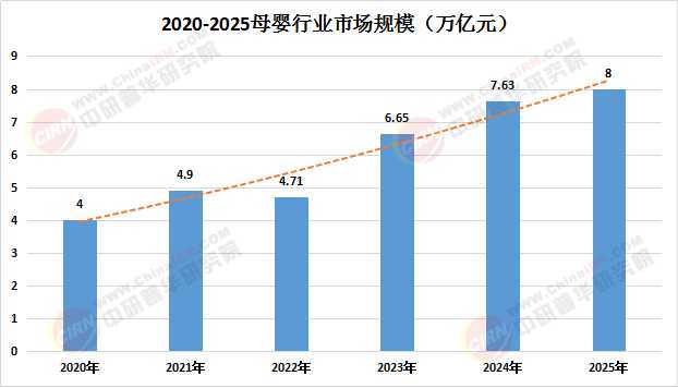 近年来,中国母婴市场规模持续扩大,展现出强劲的增长势头。2023年中国母婴市场规模已突破6万亿元,预计到2025年将达到8万亿元,年复合增长率保持在较高水平。这一增长动力主要来源于以下几个方面: