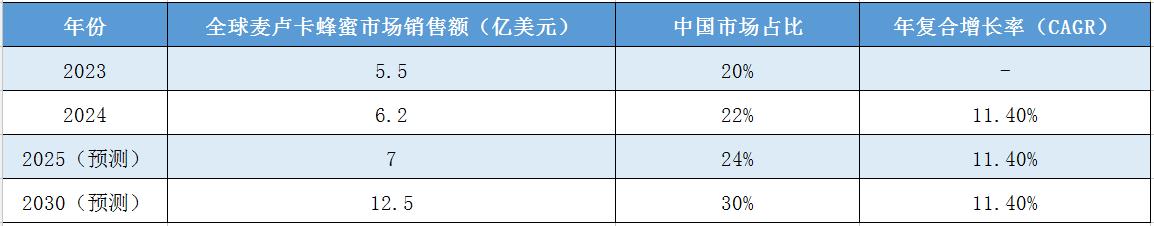 从全球市场来看,麦卢卡蜂蜜行业正处于快速增长阶段。根据中研普华《2025-2030年麦卢卡蜂蜜行业投资价值分析及发展趋势预测报告》预测,未来几年内全球麦卢卡蜂蜜市场销售额将以稳定的复合增长率增长。其中,中国市场作为全球重要的麦卢卡蜂蜜消费国之一,其市场规模和增长速度均令人瞩目。