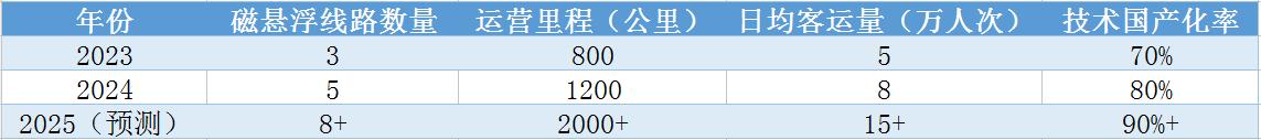 从上述表格数据可以看出,中国磁悬浮交通行业正处于快速发展阶段。磁悬浮线路数量、运营里程、日均客运量以及技术国产化率均呈现稳步增长态势。这预示着中国磁悬浮交通行业将迎来更加广阔的发展空间和更加激烈的市场竞争。
