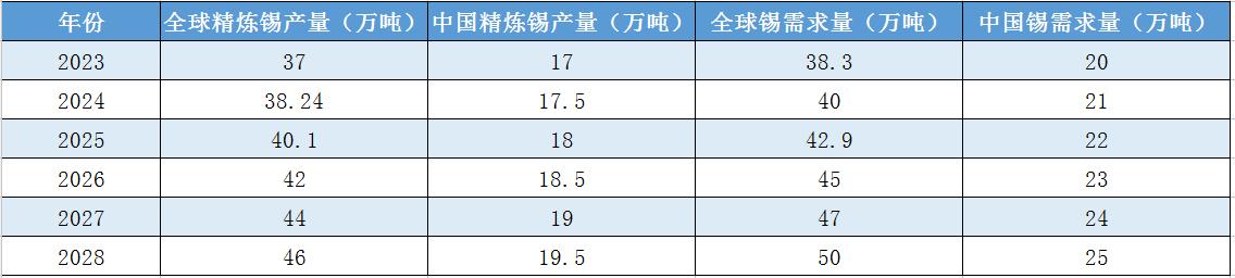 从表格中可以看出,未来五年全球和中国精炼锡产量将稳步增长,但增速逐渐放缓。同时,全球和中国锡需求量将持续增长,且增速高于产量增速。这将导致供需缺口进一步扩大,锡价有望继续上行。