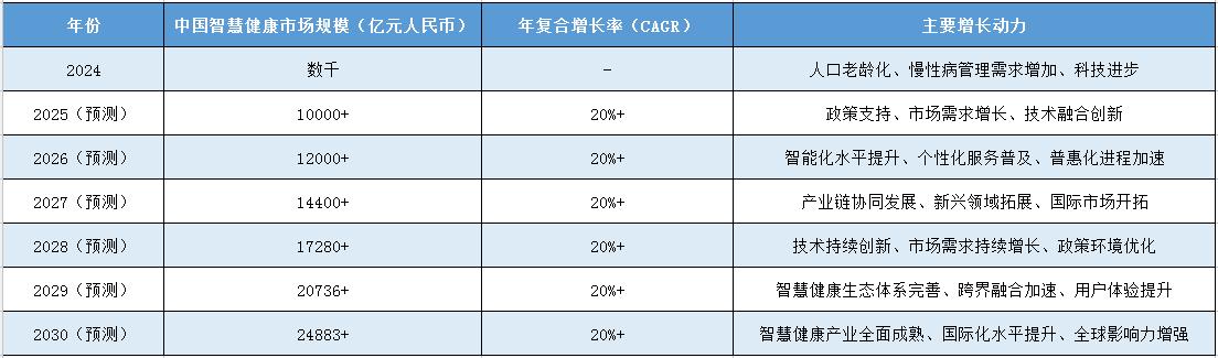 从上述表格数据可以看出,中国智慧健康市场规模呈现出快速增长的态势。预计未来几年内,随着政策的持续支持、市场的不断扩大和技术的不断创新,中国智慧健康市场规模将继续保持高速增长。同时,主要增长动力也将不断拓展和深化,为智慧健康产业带来更多的发展机遇。