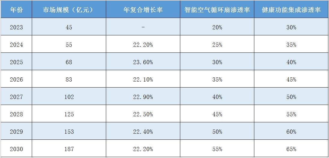 根据中研普华产业研究院《2025-2030年中国空气循环扇行业市场调研分析及投资战略研究报告》预测,未来五年中国空气循环扇市场将保持持续增长态势。随着消费者对健康、舒适生活环境的追求以及智能家居的普及,空气循环扇的市场需求将持续增长。