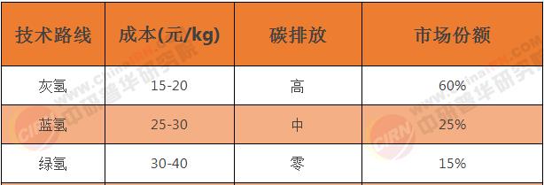 (1)制氢方式对比: